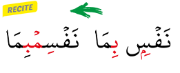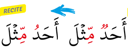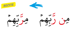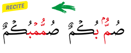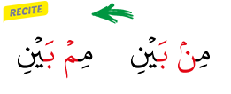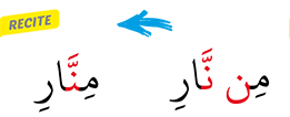 ملاحظة: إذا رأيتم نون ساكنة أو تنوين في المصحف، فتذكروا أنه لابد من تطبيق قاعدة من قواعد التجويد. مع حرف الباء نقوم بالإقلاب، ومع حروف “يرملون” نقوم بالإدغام، ومع 6 حروف نقوم بالإظهار، ومع بقية الحروف نقوم بالإخفاء.