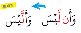 فإذا جاء حرف اللام (لـ) أو الراء (ر) بعد النون الساكنة (ن) أو التنوين، فإننا لا ننطق صوت النون.