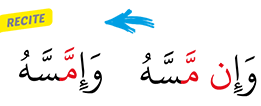إذا جاء أي حرف من الحروف التالية: الياء (ى) والميم (م) والواو (و) والنون (ن) بعد نون ساكنة أو تنوين، فإننا لا ننطق صوت النون، وننطق الحرف التالي ونطيله لثانية واحدة مع الغنة.
