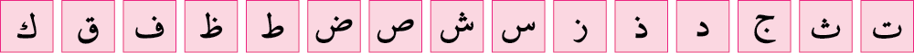 If any of the following letters comes after Noon Sakinah or Tanween, then the Noon Sakinah or Tanween will be pronounced with a very light sound (slightly hide the /n/ sound) from the Nose and with Ghunnah.
